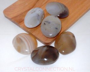 Agaat     Geeft aarding, steen die werkt met het gevoel om beter bij jezelf te blijven.